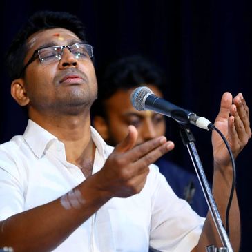 Sri Neyveli Santhanagopalan is an acclaimed senior musician steeped in traditional classicism. A recipient of Sangeet Natak Academy award, he is renowned for rendering effective concerts couched in ‘Bhakthi’ (devotion) and ‘Bhava’ (emotion), he skillfully elevates music to the pedestal of divine life philosophy. His excellent theoretical depth with extensive research of the best approaches makes him a distinctive musicologist. This multifaceted and versatile singer is also proficient at playing the veena and percussion instruments with strengths in ‘laya’ exposition. Sri Neyveli Santhanagopalan hails from a culturally strong family, and was initiated into music by his mother Smt. Jayalakshmi Ammal. He obtained his early guidance from reputed gurus like Sri.Chembai C.S.Ananthamani Bhagavathar and Sri Srirangam R.Ranganathan. His hard work and passion towards music combined with the rigorous gurukulam training under Madurai Sri. T.N.Seshagopalan turned his musical abilities into a front ranking musician.